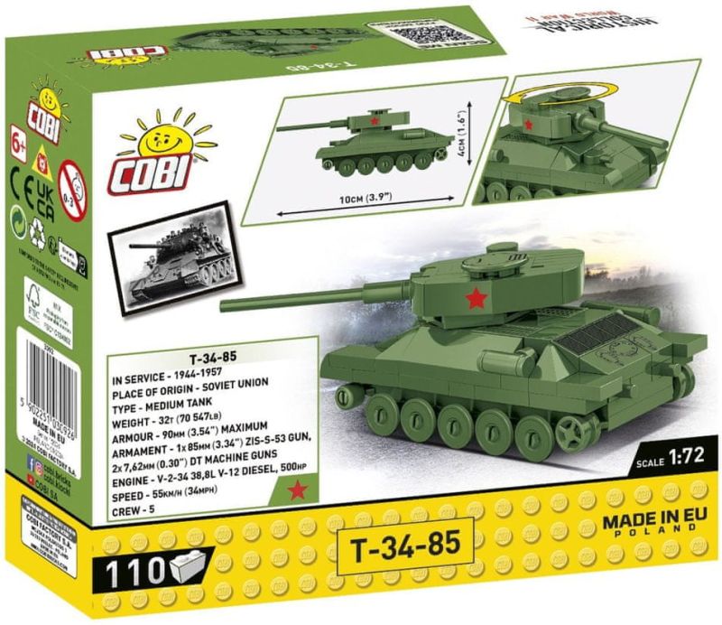 Minimodel vyrobený z kociek COBI bol navrhnutý v mierke 1:72 a pozostáva zo 110 kociek. Po zostavení má dĺžku 10 cm. Napriek kompaktným rozmerom si model zachováva všetky najdôležitejšie prvky svojej historickej inšpirácie! Na bokoch veže sú odtlačky s označením Červenej armády. Tank je možné presúvať vďaka namontovaným kolieskam. Veža tanku je tiež pohyblivá a dá sa otáčať.