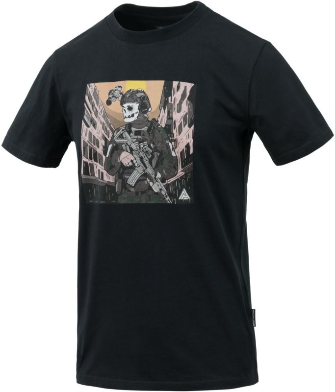 Pánske tričko s vojenským motívom kostry a panorámou zničenej metropoly.