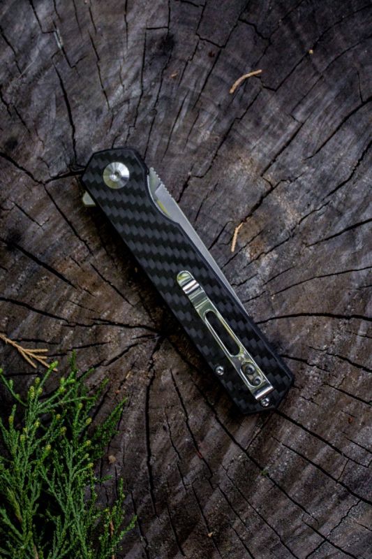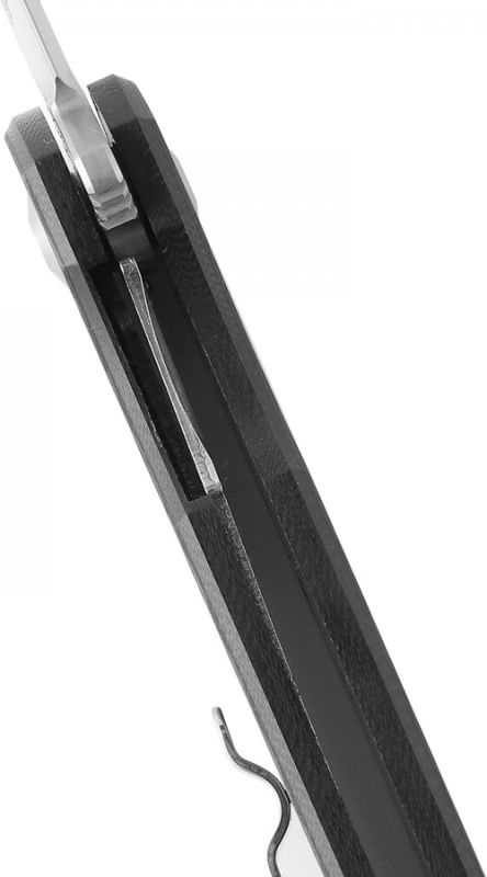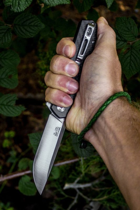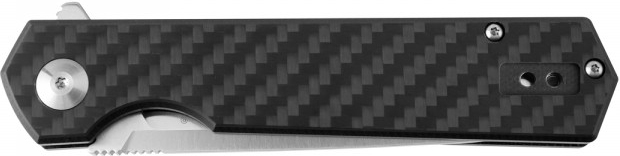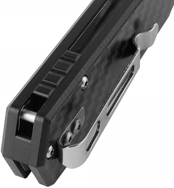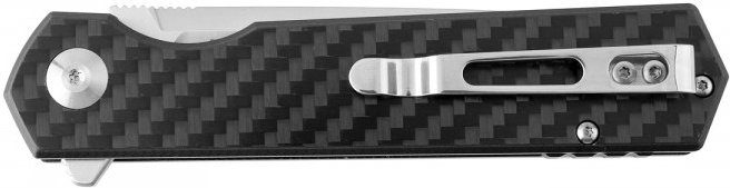 Čepeľ je vyrobená z odolnej oceli D2 s tvrdosťou 60 HRC. Otvára sa jednoducho pomocou Flipperu, v otvorenej polohe ho zaistí poistka Liner-lock. Rukoväť je vyrobená z uhlíkových vlákien.