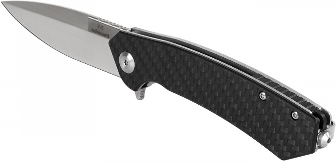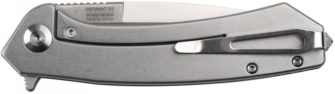 Srdcom noža je oceľ D2, odolná proti opotrebovaniu. Je to nehrdzavejúca kovová zliatina, ktorá sa vyznačuje vysokou tvrdosťou. Hodnota tvrdosti čepele je podľa Rockwellovy stupnice asi 60 jednotiek. Dĺžka čepele je 85mm, hrúbka 3,5mm. Otvoriť jednoducho čepeľ Vám pomôže Flipper. Skimen je spoľahlivo chránený proti náhodnému otvoreniu alebo zatvorenie. Celková dĺžka noža je 205mm. Tieto kompaktné rozmery priamo nabáda na každodenné použitie. Ľahko ho schováte vo vrecku, aby bol vždy po ruke.