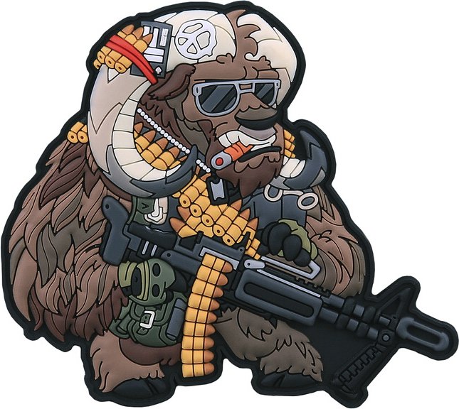 Nášivka z mäkkej gumy (na báze PVC) s 3D efektom. Každá farba je zvlášť tvarovaná (bez farbenia). Na zadnej strane sa nachádza suchý zips pomocou ktorého je možné upevniť nášivku na velcro panel na uniforme, veste, atď. Nášivka je trvanlivá - neláme sa, nebledne a nezoderie sa.