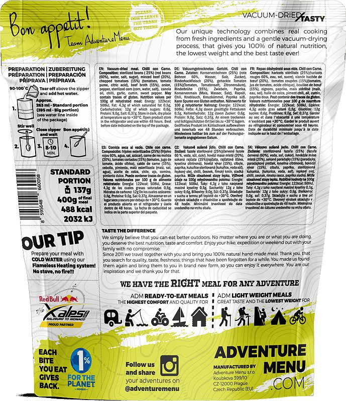 Kľúčové slová: adventure menu instantne jedlo ready to eat dehydrovane jedla zavarane jedla