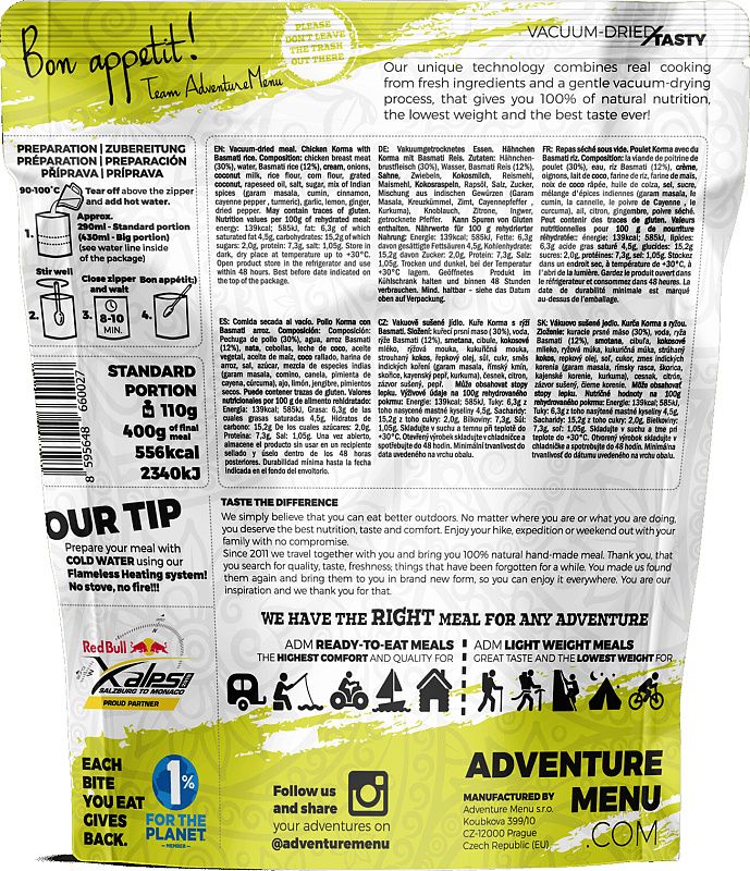 Kľúčové slová: adventure menu instantne jedlo ready to eat dehydrovane jedla zavarane jedla