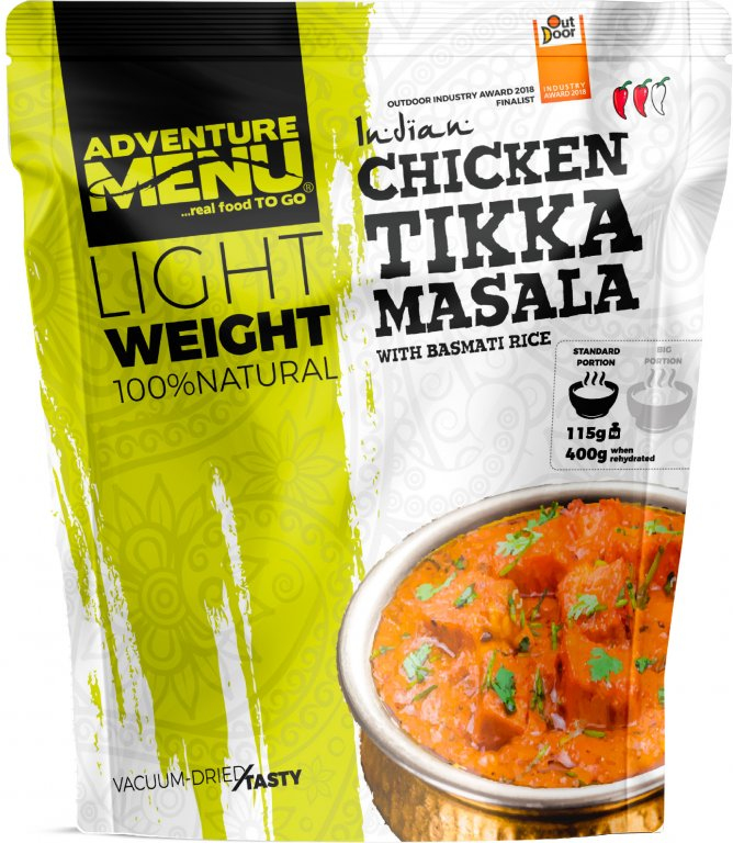 Zloženie: Kuracie prsia (30 %), nakrájané paradajky (20 %) (paradajky, paradajková šťava, kyselina citrónová), ryža basmati (16 %), smotana (16 %), jogurt (10 %), cibuľa, cesnak, maslo (mlieko), olivový olej, soľ, zázvor, garam masala, kurkuma, rasca, chilli, mletý koriander, trstinový cukor, čerstvý koriander.