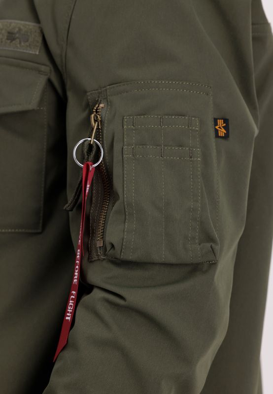 Dôraz na detail je zrejmý v precíznom spracovaní a výrobe materiálu, pričom každý prvok je dôkladne premyslený. Charakteristickým znakom je páska RBF (Remove Before Flight) umiestnená na vrecku na rukáve, ktorá pripomína dlhoročnú tradíciu výroby leteckých búnd Alpha Industries pre americké vzdušné sily.