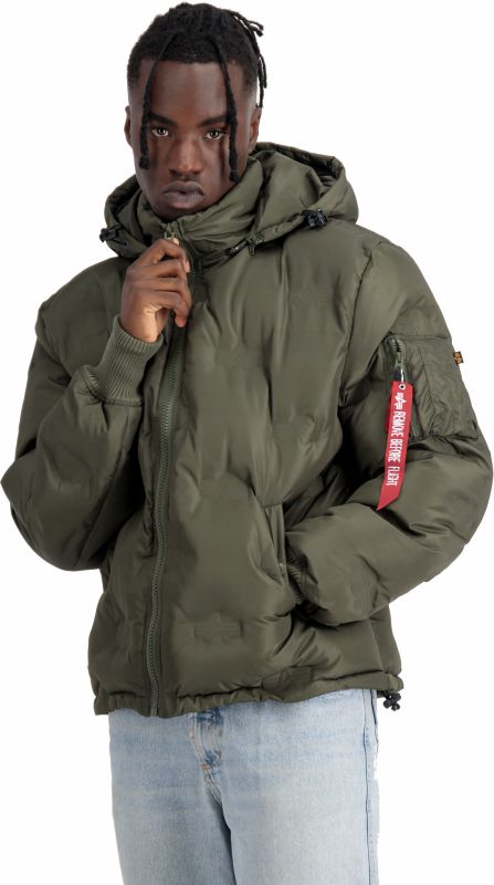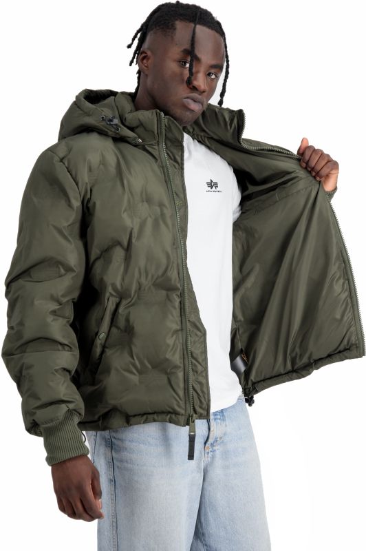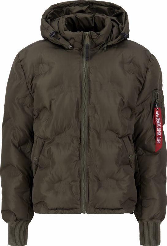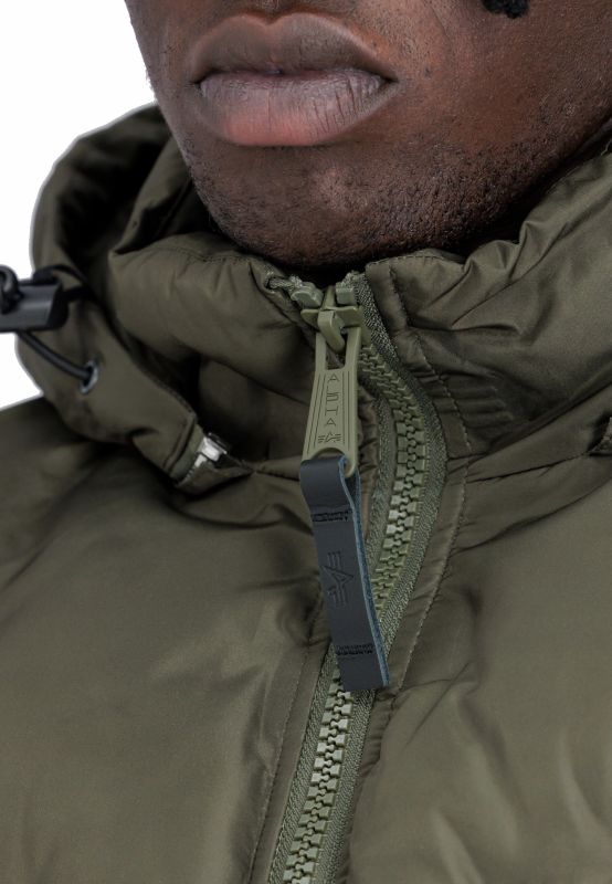 Bunda Alpha Industries Hooded Logo Puffer je navrhnutá tak, aby vás udržala teplými aj v najnáročnejších poveternostných podmienkach. Tento model sa zapína na zips, a vnútorná strana zipsu je vybavená praktickým pásikom, ktorý bráni vniknutiu vlhkosti.