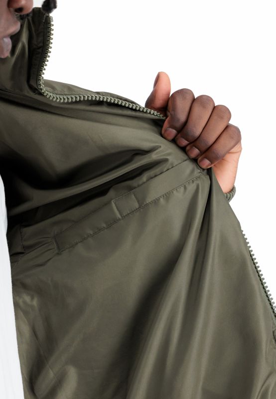 Tento model bol starostlivo ušitý a výrobca venoval pozornosť aj najmenším detailom. Na ľavom rukáve nájdete pásku RBF, ktorá odkazuje na tradíciu leteckých búnd, ktoré Alpha Industries dlhé roky vyrábala pre americké letectvo. Nápis “Remove Before Flight” je ďalším charakteristickým znakom.