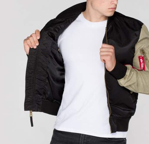 Bunda Alpha Industries MA-1 v užšom strihu, ktorý bol navrhnutý v roku 1959. Náplety na rukávoch, na krku a v páse poskytujú komfortné nosenie a ochranu pred chladom.