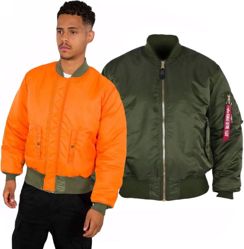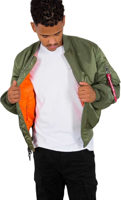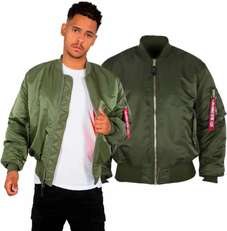 Pánska bunda Alpha Industries MA-1 Flyers v zelenom odtieni je ikonický model „bomber jacket“ s ležérnym štýlom, ktorý sa stal najobľúbenejšou bundou značky. Je ušitá z hrubého, odolného a nepremokavého nylonu, ktorý spoľahlivo ochráni pred dažďom, vetrom a nepriaznivým počasím. Kontrastná oranžová podšívka dodáva bunde jedinečný vzhľad a odkazuje na jej letecký pôvod.