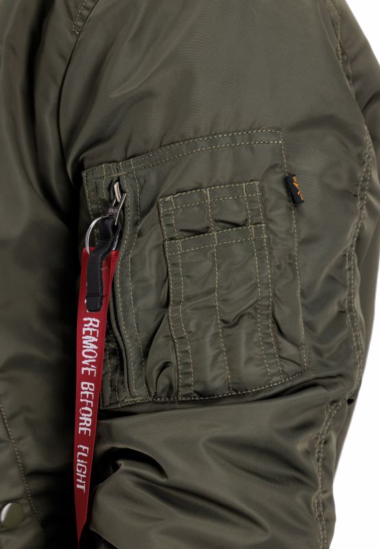 Bunda Ma-1 VF Authentic Overdyed bola starostlivo ušitá a výrobca si dal záležať aj na tých najmenších detailoch, čo je vidieť na každom jednom detaile. Tento model sa vyznačuje páskou RBF zavesenou na vrecku na ľavom rukáve. Nápis Remove Before Flight svojou tradíciou odkazuje na letecké bundy, ktoré Alpha dlhé roky vyrábala pre americké letectvo.