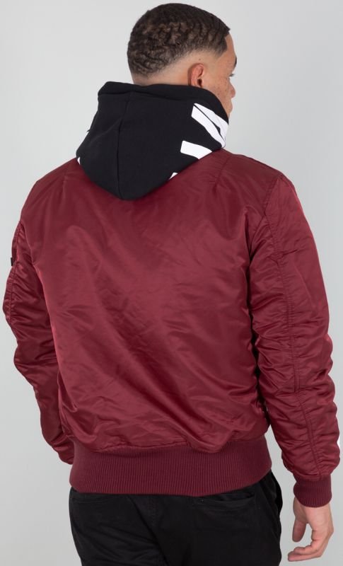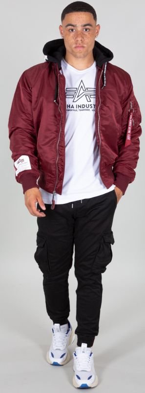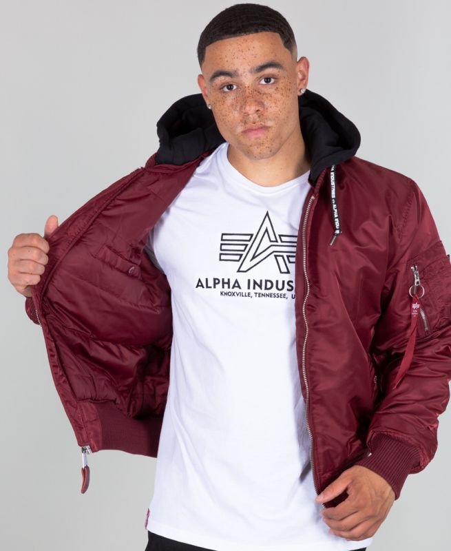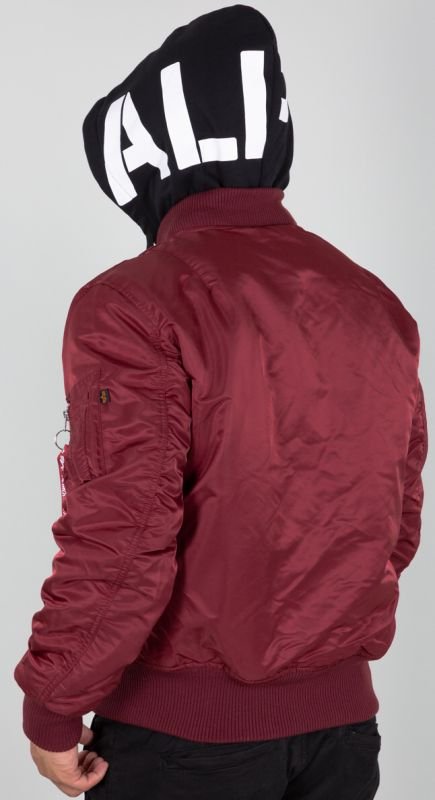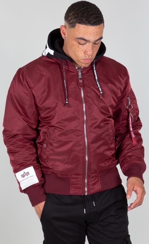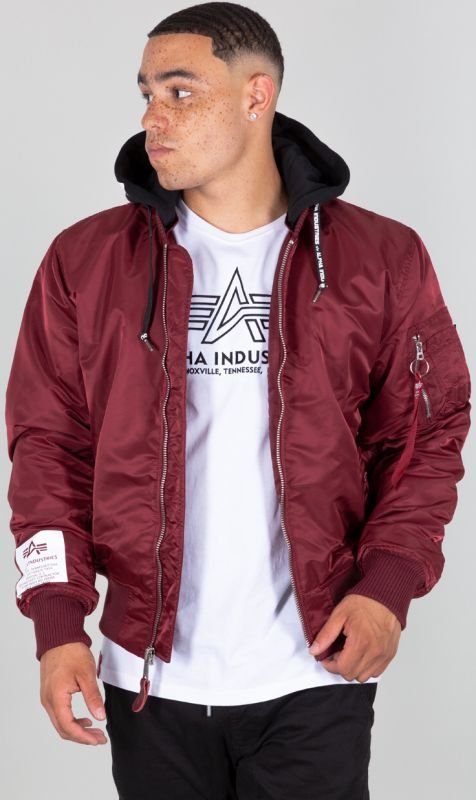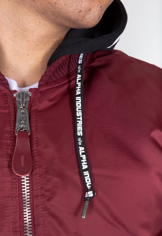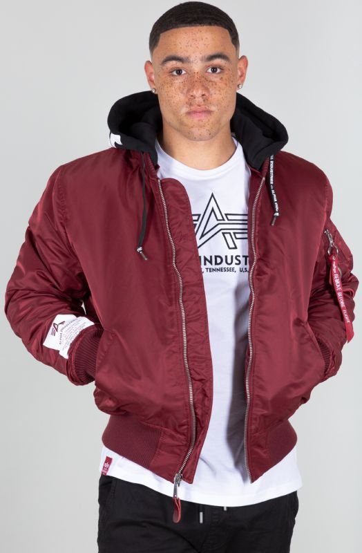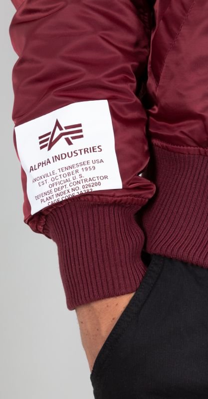 Ďalšie výrazné prvky zahŕňajú potlač loga Alpha Industries na rukávoch a kapucni, praktické vonkajšie vrecká s gombíkovým zapínaním a charakteristické ramenné vrecko na zips s červenou visačkou „Remove Before Flight“. Kapucňa má tiež šnúrky s potlačou, ktoré dodávajú bunde športový vzhľad.
