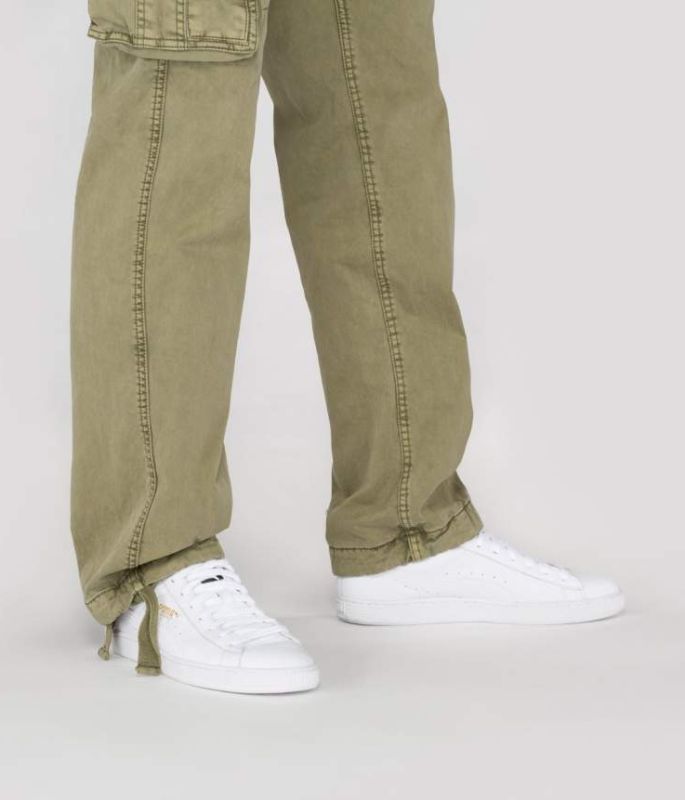 Dizajn nohavíc zahŕňa šesť vreciek – dve bočné vrecká, dve na stehnách a dve zadné vrecká so zapínaním na cvoky, ktoré poskytujú dostatok miesta na uskladnenie drobných vecí. Na pravej strane sa nachádza ikonické logo Alpha Industries, čo nohaviciam dodáva autentický vzhľad. Spodok nohavíc je nastaviteľný, čo umožňuje prispôsobenie podľa preferencií nositeľa.