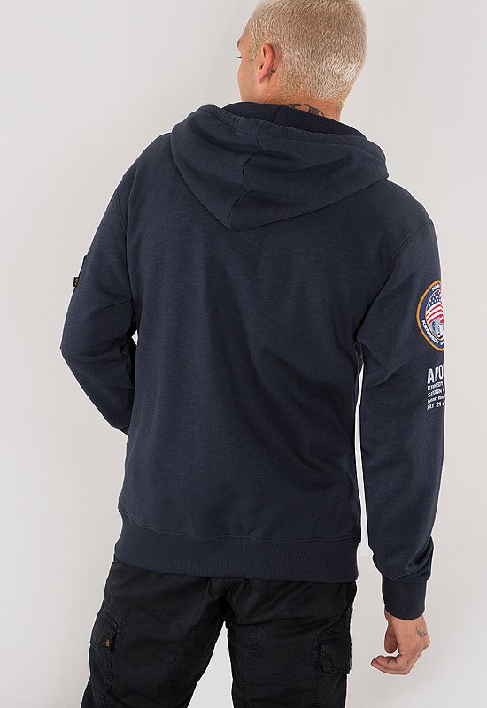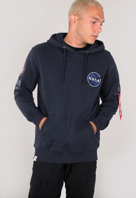 Pánska mikina s kapucňou a klokaniou kapsou od značky Alpha Industries s motívmi NASA na hrudi a rukávoch. Kvalitná a štýlová mikina vyrobená z bavlny a polyesteru. Náplety na rukávoch a v páse poskytujú komfortné nosenie a ochranu pred chladom.