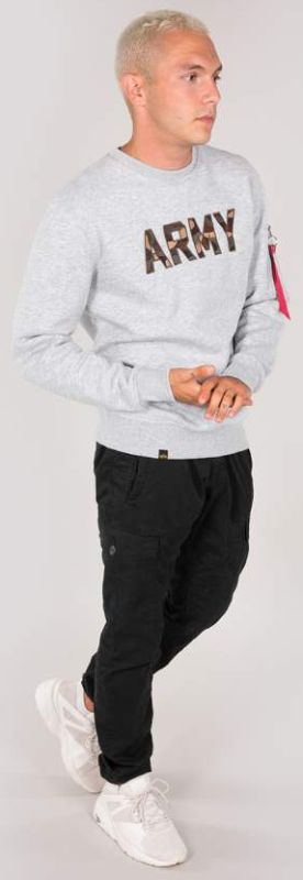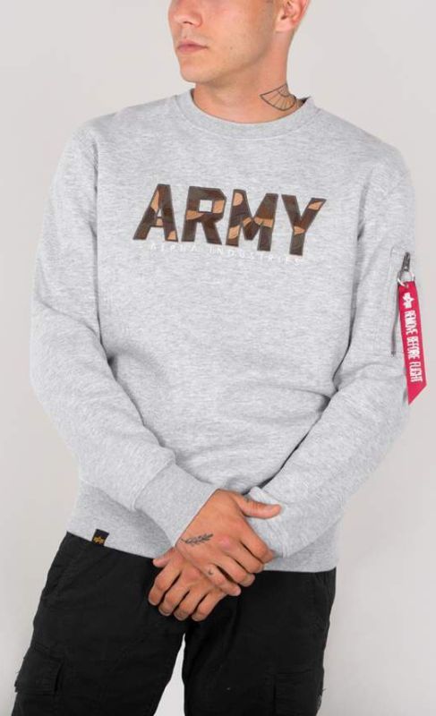 Kvalitná, štýlová a hlavne pohodlná mikina Alpha Industries bez kapucne s veľkým nápisom Army na hrudi a šikovným vreckom na ľavom rukáve s príveskom Remove Before Flight.