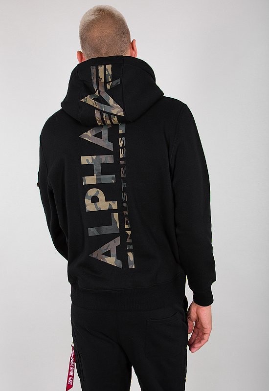 ALPHA INDUSTRIES Mikina Back Print Hoody Camo Print - čierna/woodland (178318CP/380)