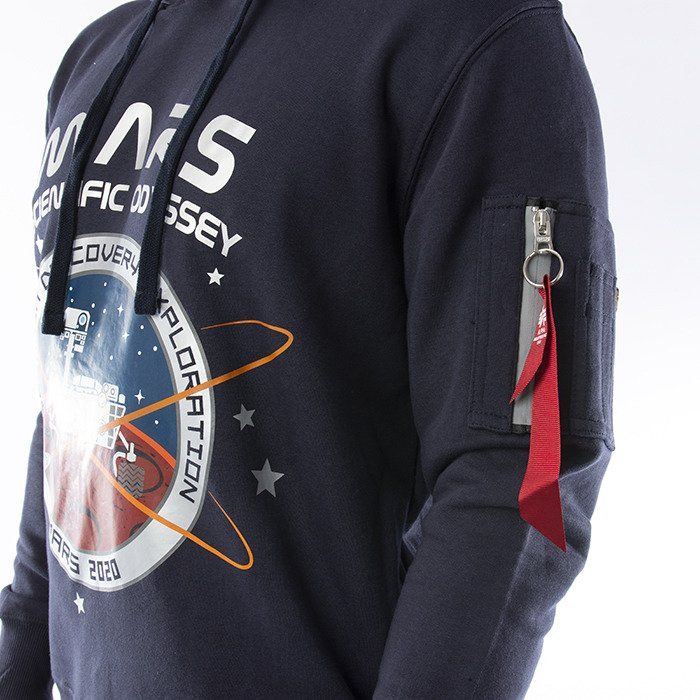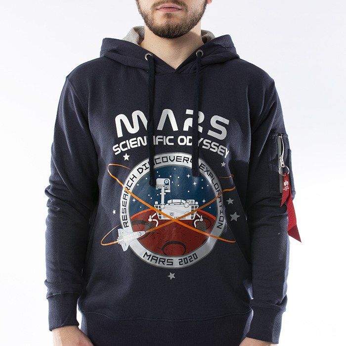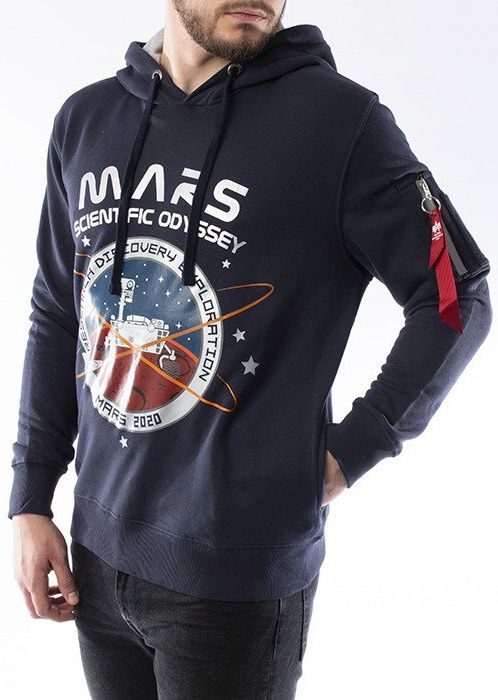 Pánska mikina Alpha Industries Mission To Mars Hoody v modrej farbe je pohodlná, štýlová a ideálna na každodenné nosenie. Jej dizajn je inšpirovaný misiami na Mars, čo sa odráža aj na výraznej potlači na prednej strane. Mikina sa oblieka cez hlavu, má praktickú kapucňu so šnúrkami, bočné vrecká a pružné náplety na rukávoch aj spodnom leme. Vďaka zmesi bavlny a polyesteru je príjemná na dotyk a zároveň odolná. Skvele sa hodí do voľnočasových outfitov, na prechádzky či stretnutia s priateľmi.