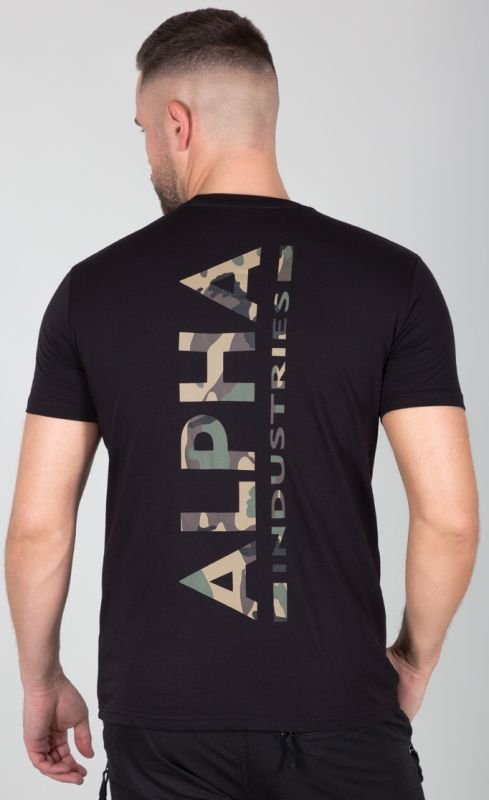 Pánske tričko Alpha Industries Backprint T Camo Print v čiernej farbe s woodland maskáčovou potlačou kombinuje klasický streetwear vzhľad s military štýlom. Vyrobené je zo 100 % bavlny, ktorá je mäkká, priedušná a príjemná na nosenie. Regular fit strih zaručuje pohodlie a voľnosť pohybu, takže je ideálne na každodenné nosenie aj voľnočasové aktivity. Veľká potlač na chrbte a decentné detaily vytvárajú originálny a výrazný outfit pre všetkých milovníkov maskáčového dizajnu.