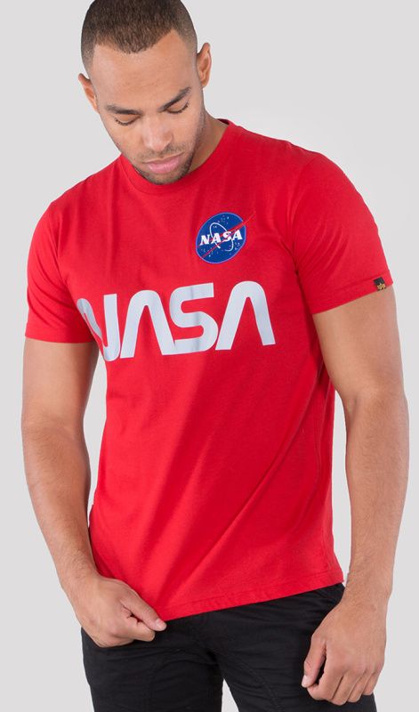 štýlové tričko od firmy Alpha Industries spolu so spoluprácou s NASA je vyrobené zo 100% bavlny. Tričko má veľký reflexný nápis NASA a logo na hrudi.
