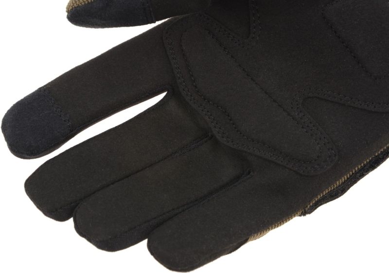 Na vnútornej strane palca a končekov prstov sú protišmykové panely, ktoré umožňujú jednoduché ovládanie dotykových obrazoviek zariadení, ako sú smartfóny alebo tablety. Elastická spodná časť rukavice umožňuje jednoduchšie prispôsobenie sa zápästiu a na vonkajšej strane pohodlný suchý zips, ktorý umožňuje nastavenie obvodu, ako aj upevňovacie pútko, ktoré umožňuje pripevnenie rukavíc k výstroju.