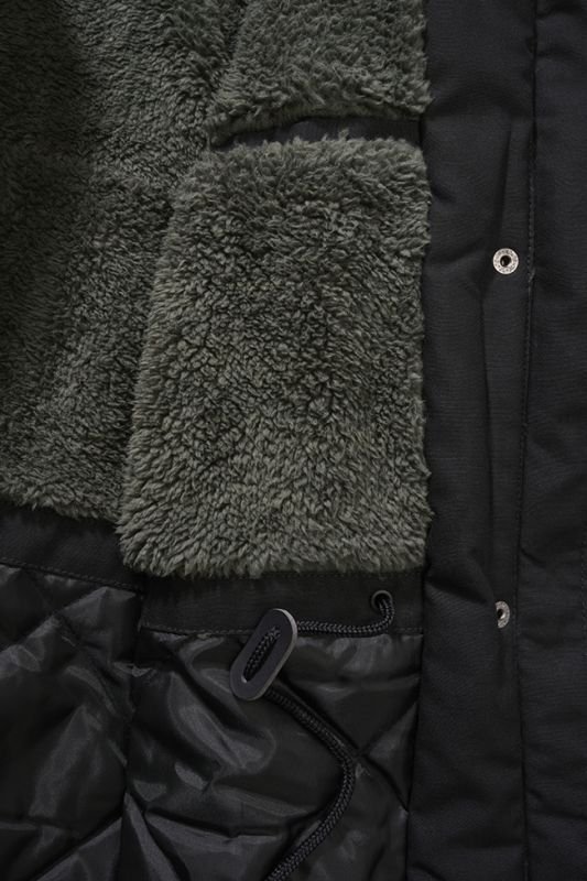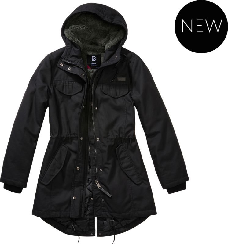 Zimná parka od nemeckej firmy Brandit so zateplenou kapucňou a vrchnou časťou umelou kožušinou. Zapínanie je riešené formou dlhého zipsu doplneného o cvoky. Vo vnútornej časti cvoky na rozšírenie zadnej predĺženej časti, ktorá má rozparok pre pohodlné nosenie. Na kapucni, v páse a spodnom leme šnúrka k stiahnutiu.