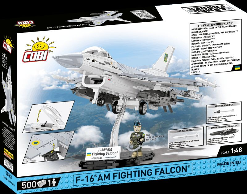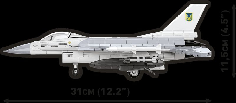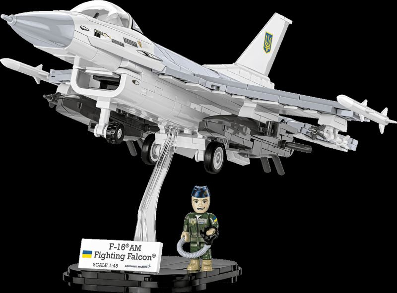 Stavebnica modelu amerického viacúčelového stíhacieho lietadla F‑16 Fighting Falcon s insígniami Ukrajinských vzdušných síl. Zostavený model má naklápacie riadiace plochy a otvárací kryt kokpitu pre figúrku pilota. Pod krídlami sú zavesené prídavné palivové nádrže, rakety Sidewinder, AMRAAM a Storm Shadow. Model môže stáť na vlastnom podvozku alebo na priloženom stojane s popisom. Stavebnica je vyrobená pod oficiálnou licenciou spoločnosti Lockheed Martin.