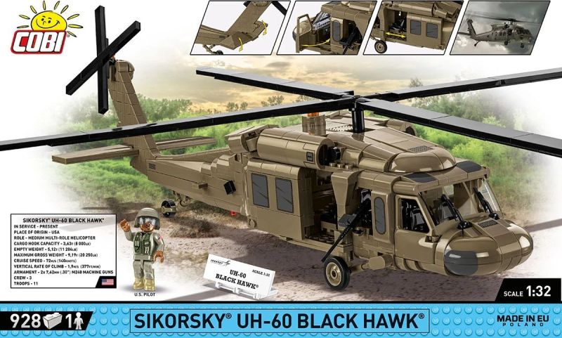 Sikorsky UH-60 Black Hawk – COBI 5906 – Armed Forces 1:32 Viacúčelový americký vojenský vrtuľník v mierke 1:32.