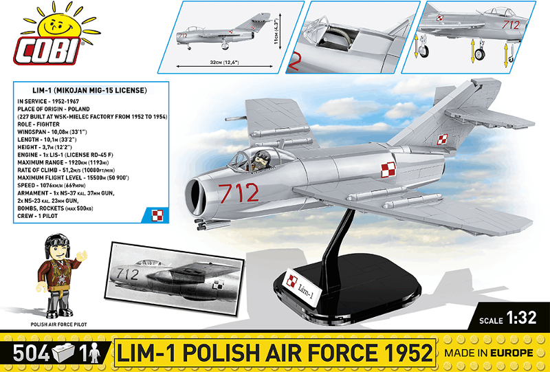 Stavebnica poľského stíhacieho lietadla LIM-1 (MIG-15) s kódovým označením NATO "Fresco". Zostavený model má odnímateľný kryt kokpitu na jednoduchú inštaláciu figúrky pilota. Model môže stáť na vlastnom podvozku alebo na priloženom stojane s popisom. Vzhľadom na konštrukciu modelu nie sú podvozkové nohy zasúvateľné, ale dajú sa ľahko odstrániť. Súčasťou je figúrka poľského pilota.