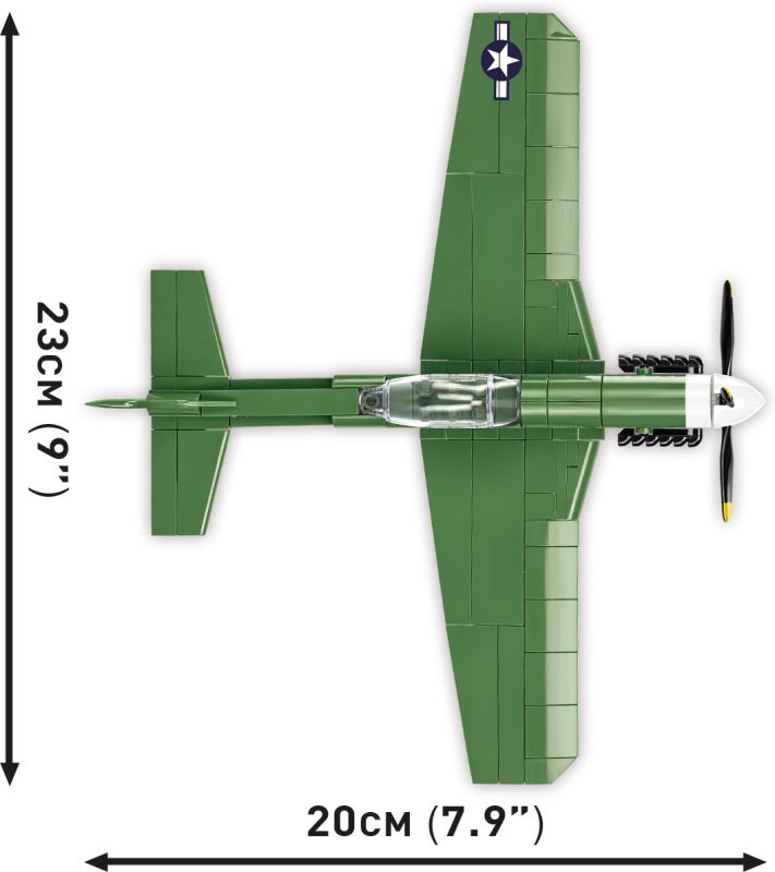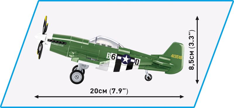 Stavebnica modelu amerického stíhacieho lietadla North American P-51D Mustang vo farbách 363. stíhacie letky USAF. Zostavený model má odnímateľný podvozok a otočnú vrtuľu. Stavebnice v mierke 1:48 prinášajú rovnakú radosť, ale viac miesta na poličke. Vyrobené pod oficiálnou licenciou spoločnosti The Boeing company.