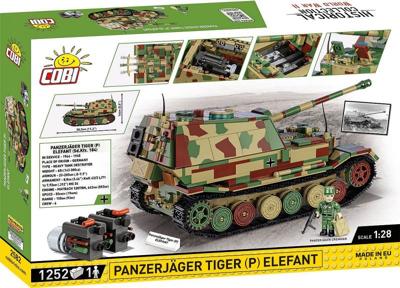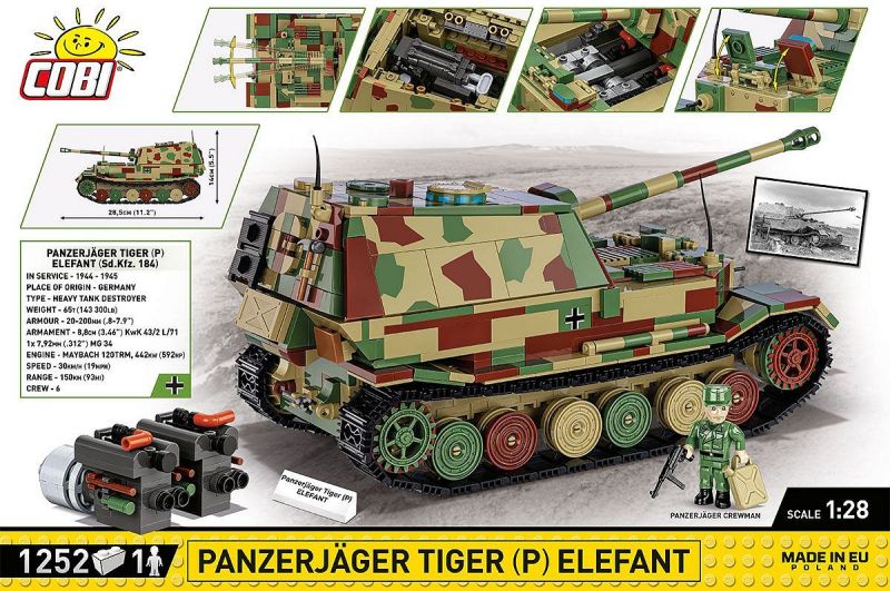 Stavebnica nemeckého ťažkého stíhača tankov Elefant v poľnej kamufláži. Zostavený model má nastaviteľný námer aj odmer kanónu, otvárací poklop veže na usadenie figúrky. Pod odnímateľným horným krytom veže sa nachádza miesto nabíjača so záklzným systémom delá a uložené náboje. V prednej časti je pod krytom uložený motor Maybach 120TRM, ktorý môže byť vystavený samostatne. Súčasťou balenia je aj figúrka tankistu ozbrojeného samopalom MP40. Samozrejme tiež nechýba kocka s popisom.