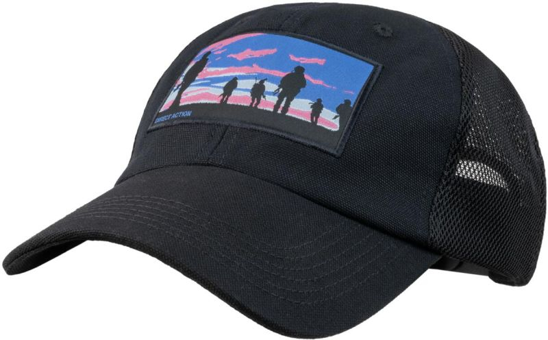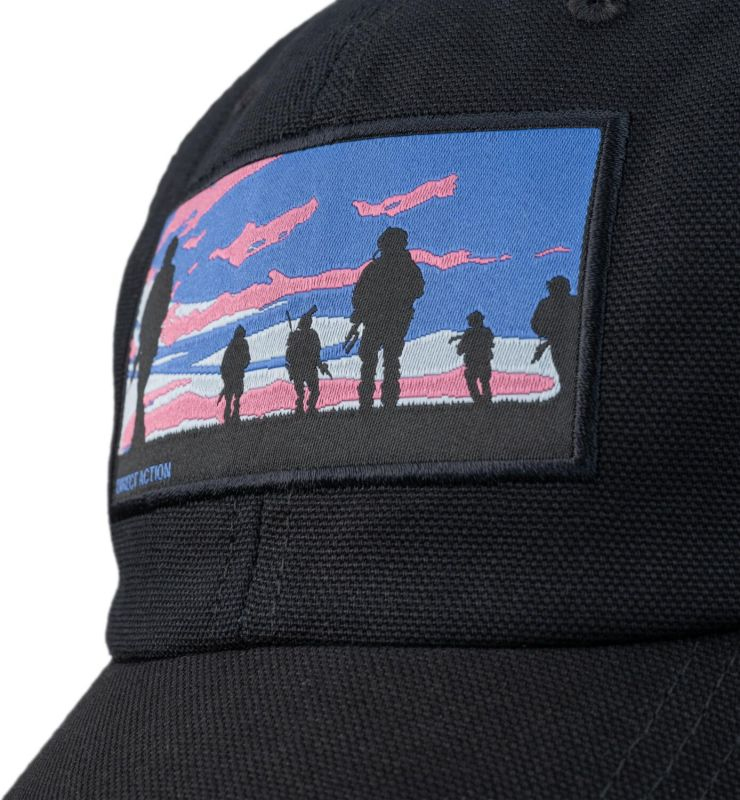 Baseballová čiapka DIRECT ACTION® Sunset spája praktickosť s taktickým vzhľadom a jedinečným grafickým motívom. Na prednej strane je vyšitá silueta vojakov kráčajúcich do západu slnka – symbol pocty službe a vytrvalosti.