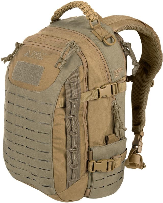 Batoh Direct Action Dragon Egg® Mk II s objemom 25 litrov a je vhodný najmä ako väčší EDC batoh (Every Day Carry), ľahký outdoor batoh alebo pre základné taktické činnosti. Batoh je koncipovaný ako dvojkomorový. Prvé, hlavné a najväčšie vrecko má polstrovanú priehradku pre hydratačný vak v chrbtovej časti batohu a môže byť využité aj pre uloženie rádiostanice alebo notebooku o veľkosti 15" a navyše ešte tu nájdeme aj malú sieťovanú kapsičku. Na batohu Ďalej nájdeme dve predné vrecká slúžiace na uloženie drobností - na vrchu je malá kapsa, ktorá je zvnútra lemovaná jemným fleece materiálom a je vhodná napríklad pre uloženie okuliarov. Vrecko s organizérom, vhodné na uloženie rôznych drobností, vrátane miesta pre uloženie tabletu. Oproti je sieťované vrecko. Vrecká na bokoch batohu sú vhodné na nosenie malých predmetov - tu nastala malá zmena oproti predchádzajúcej generácii - zips bol odstránený a nahradený elastickým pásom, ktorý daný priestor rozšíril a umožňuje tak uskladniť aj rozmernejšie veci ako napr. štandardnú US poľnú fľašu.