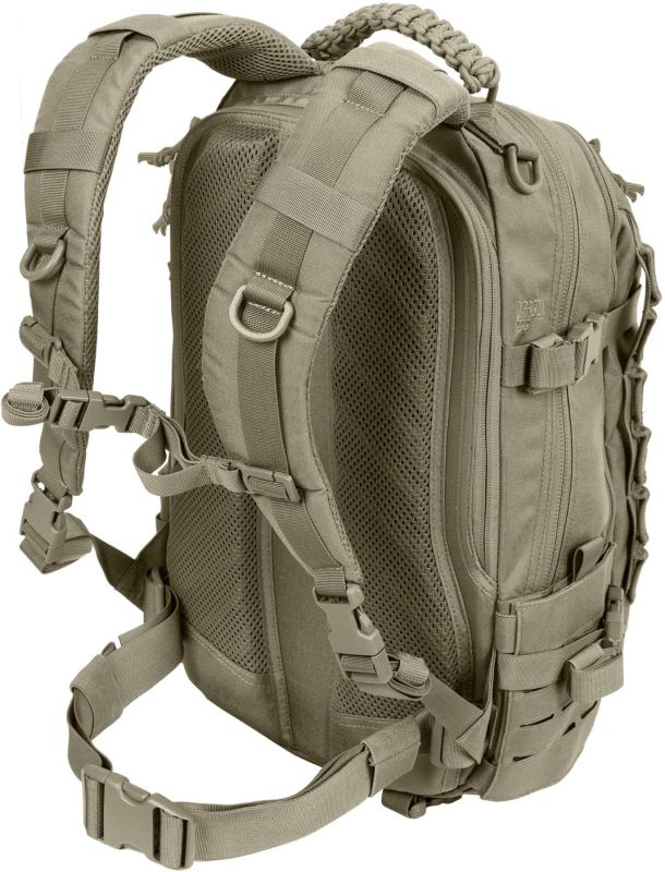 Batoh Direct Action Dragon Egg® Mk II s objemom 25 litrov a je vhodný najmä ako väčší EDC batoh (Every Day Carry), ľahký outdoor batoh alebo pre základné taktické činnosti. Batoh je koncipovaný ako dvojkomorový. Prvé, hlavné a najväčšie vrecko má polstrovanú priehradku pre hydratačný vak v chrbtovej časti batohu a môže byť využité aj pre uloženie rádiostanice alebo notebooku o veľkosti 15" a navyše ešte tu nájdeme aj malú sieťovanú kapsičku. Na batohu Ďalej nájdeme dve predné vrecká slúžiace na uloženie drobností - na vrchu je malá kapsa, ktorá je zvnútra lemovaná jemným fleece materiálom a je vhodná napríklad pre uloženie okuliarov. Vrecko s organizérom, vhodné na uloženie rôznych drobností, vrátane miesta pre uloženie tabletu. Oproti je sieťované vrecko. Vrecká na bokoch batohu sú vhodné na nosenie malých predmetov - tu nastala malá zmena oproti predchádzajúcej generácii -  zips bol odstránený a nahradený elastickým pásom, ktorý daný priestor rozšíril a umožňuje tak uskladniť aj rozmernejšie veci ako napr. štandardnú  US poľnú fľašu.