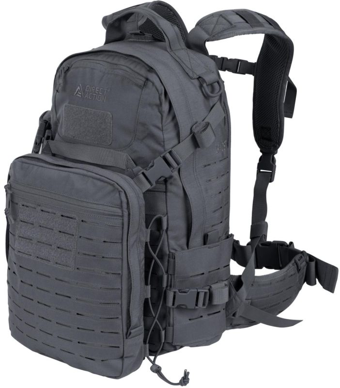Doplnkové postranné vrecká sa môžu použiť na malé ploché predmety. Batoh je kompatibilný s MOLLE / PALS systémom, ktorý je pri tomto ruksaku laserovo rezaný. Tento systém robí batoh perfektné modulárny. Systém zavesenia ruksaku je veľmi komfortný a nezaťažuje veľmi ramená z dôvodu zapínania ruksaku aj okolo pásu plus výrobca Direct Action použil pohodlné výstuhy aj na chrbte.