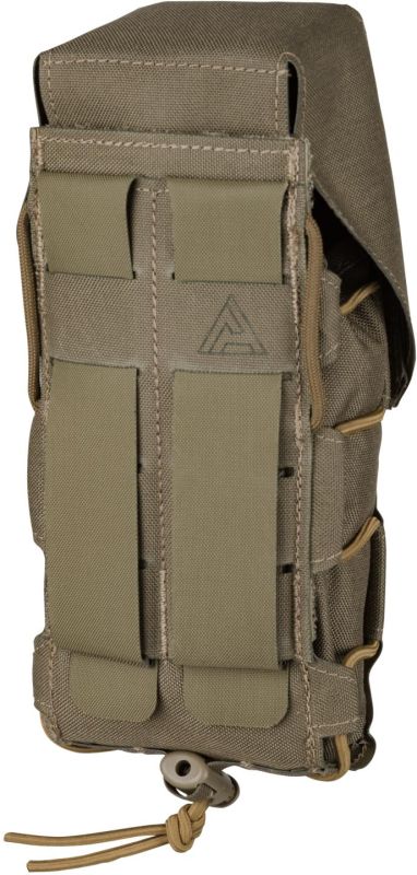 Dvojitá AR sumka na zásobníky. Konštrukcia v tvare boxu chráni zásobníky pred všetkými vonkajšími vplyvmi. Zatváranie na klip zaručuje jednoduché a tiché otváranie. Sumka má integrovaný nastaviteľný systém na princípe elastickej šnúrky, ktorý slúži na rýchle nastavenie objemu - z double na single, čiže z dvojitej sumky na sumku na jeden AR zásobník.