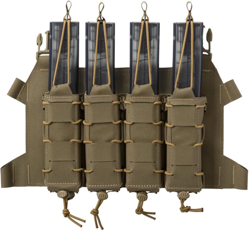 Extrémne ľahká skeletonizovaná chlopňa určená na nosenie štyroch zásobníkov SMG vrátane MP5 alebo Scorpion Evo. Pokrytá laserom vyrezávaným modulárnym systémom kompatibilným s MOLLE/PALS. Chlopňa bude dokonale fungovať s nosičom plátov BEARCAT® a systémom SPITFIRE®. Zásobníky sú zhora zaistené bungee šnúrkami s pútkami Hypalon®. Chlopňa sa k nosiču platní pripevňuje pomocou dvoch bočných praciek. Pomocou prídavného rozhrania sa dá premeniť na kompaktnú hrudnú súpravu.