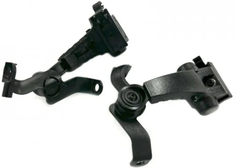 Tento montážny adaptér na prilbu od značky Earmor je určený pre slúchadlá série Mark4 / PLUS a umožňuje ich priame upevnenie na ARC lišty taktických prilieb. Vďaka otočnému dizajnu s možnosťou sklopenia dopredu aj dozadu poskytuje rýchle nastavenie podľa potreby a jednoduché odklopenie slúchadiel bez ich zloženia. Konštrukcia obsahuje štyri nastaviteľné kĺby, ktoré umožňujú prispôsobenie rôznym tvarom hlavy a pohodlné nosenie aj s iným taktickým vybavením. Adaptér je optimalizovaný pre použitie s nočným videním, pričom uvoľňuje miesto na bočných lištách prilby a zároveň si zachováva nízku hmotnosť a vysokú odolnosť.