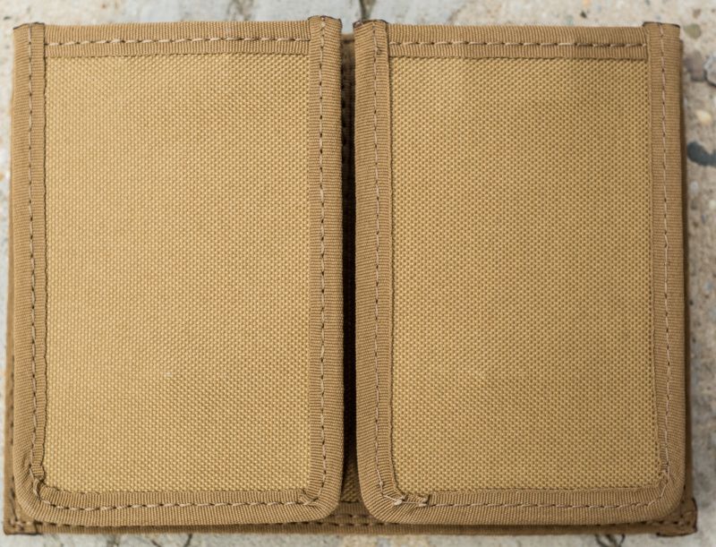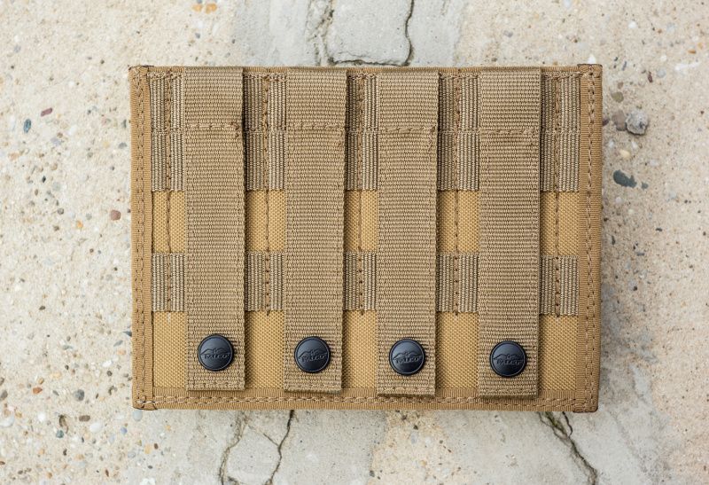 Vyrobené z odolného plastového korpusu potiahnutého látkou pre lepšie maskovanie a tichšiu manipuláciu. Uchytenie je riešené pomocou MOLLE systému, ktorý zaručuje kompatibilitu s taktickými vestami, nosičmi plátov alebo opaskami s MOLLE väzbou.