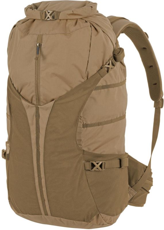Moderný turistický batoh od firmy Helikon je kombináciou ľahkých a odolných materiálov s komfortnou konštrukciou. Priestranná hlavná priehradka má dva prístupové body - jeden cez obojstranný vrchný otvor a druhý cez vertikálny predný zips. Batoh má na bokoch dve elastické vrecká zo sieťoviny napríklad na fľašu s vodou. Väčšie predné elastické vrecko môže slúžiť na prenos prilby, mikiny alebo bundy. Pohodlný nastaviteľný bedrový pás je vybavený dvoma vreckami zo sieťoviny so zipsom. Vďaka MOLLE väzbám je možné po bokoch batohu pripevniť ďalšie kapsy.