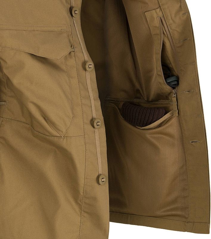Klasické náprsné vrecká so zapínaním na gombíky ľahko pojmú vecí ako vreckový nôž, kresadlo, kompas atď. Na uviazanie a upevnenie predmetov vo vreckách možno použiť ploché pútka. Woodsman má dve vnútorné sieťované vrecká a jedno napoleonské, na zips. Samotná košeľa sa zapína na kanadské gombíky.