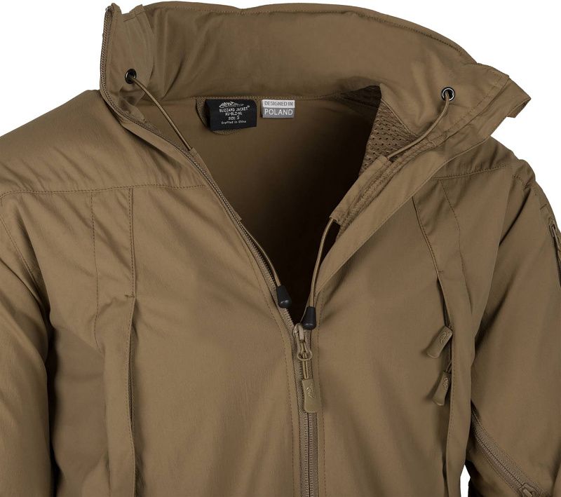 Kapucňu možno pre väčšie pohodlie schovať do goliera. Šesť vreciek uľahčuje prenášanie predmetov. Veľkou výhodou je vetranie v podpazuší, ktoré možno regulovať pomocou zipsov. Blizzard je outdoorová verzia našej bundy Trooper z radu Urban. Blizzard sa od modelu Trooper líši mierne voľnejším strihom, ktorý vám umožní nosiť termoprádlo a fleece s ľahkosťou a voľnosťou pohybu. Panely so suchým zipsom na ramenách svedčia o jej vojenskom pôvode.