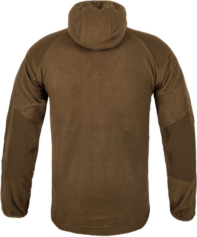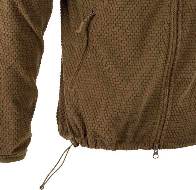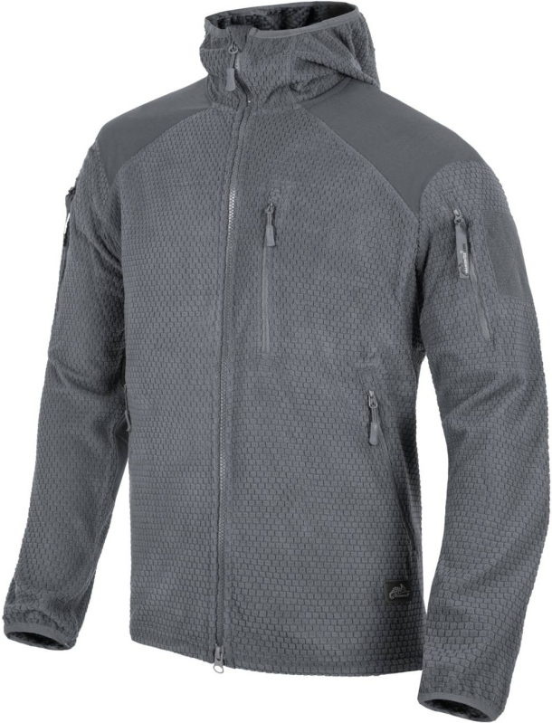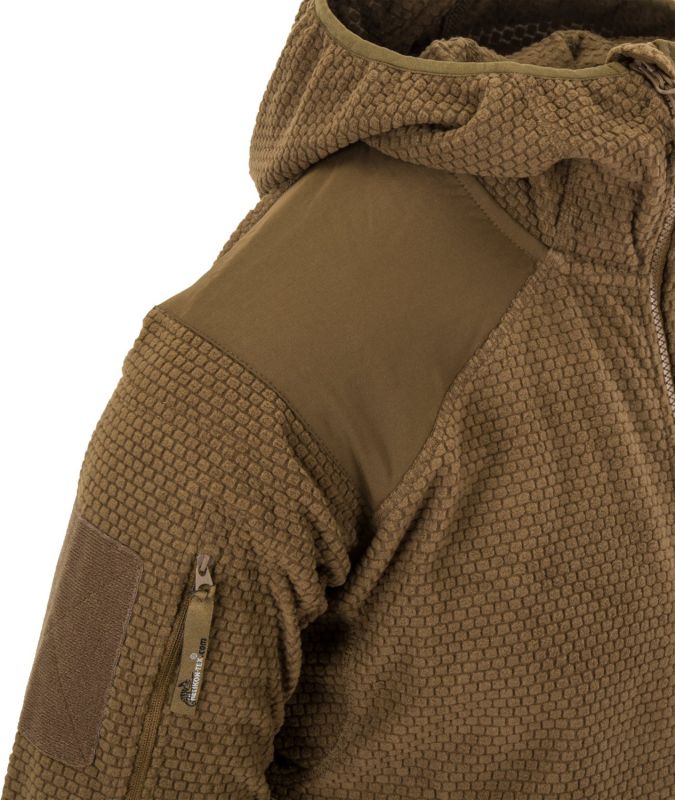 Mikina Alpha s kapucňou je ľahká fleecová bunda, výborná ako stredná alebo v suchom počasí aj ako vrchná vrstva. Mikina je vystužená na ramenách a lakťoch, čo zabraňuje opotrebovaniu a zničeniu materiálu na najviac namáhaných miestach. Bunda má päť vonkajších vreciek na zips. Dve vrecká na rukávoch, dve po bokoch a jeden na hrudi. Náprsné vrecko má tiež malý otvor na káble. šnúrka v spodnej časti bundy poskytuje možnosť stiahnutia.