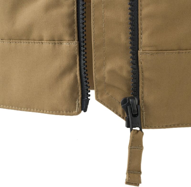 Helikon Greyman je vybavený hlavným zipsom s funkciou odtrhnutia, ktorý v prípade potreby stačí zatiahnuť na rozopnutie bundy. Tento aj ostatné vreckové zipsy poskytuje renomovaná značka YKK. Bunda Helikon má 5 vreciek: 2 vonkajšie vrecká s užitočnými organizérmi, napr. na nôž EDC, 2 vnútorné vrecká na zásobníky pre karabíny typu AR a náprsné vrecko na doklady alebo smartfón.