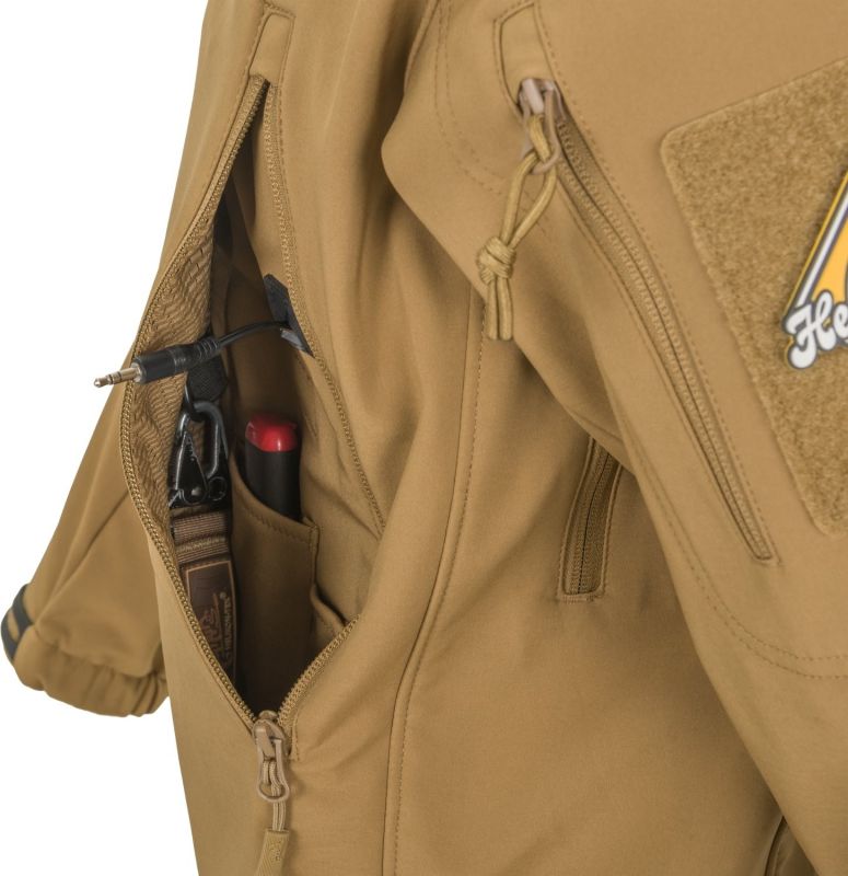 Bunda Gunfighter je vybavená jedným vnútorným vreckom s uzatváraním na suchý zips, dvoma vreckami na ramenách uzatváraných na zips s velcro panelmi, jedným vreckom na ľavej ruke s uzatváraním na zips, dvoma vreckami na hrudi uzatváranými na zips a veľkým vreckom na chrbte uzatváraným dvoma zipsami. Vrecká na hrudi sú vybavené D prstencom slúžiacim na zavesenie drobností a dierkou na prevlečenie kábla od slúchadiel. Softshellová bunda Gunfighter je vybavená pevným, vetru odolným zipsom s dvoma jazdcami, manžetami nastaviteľnými pomocou suchého zipsu a nastavením pásu pomocou elastickej šnúrky s plastovou brzdou.
