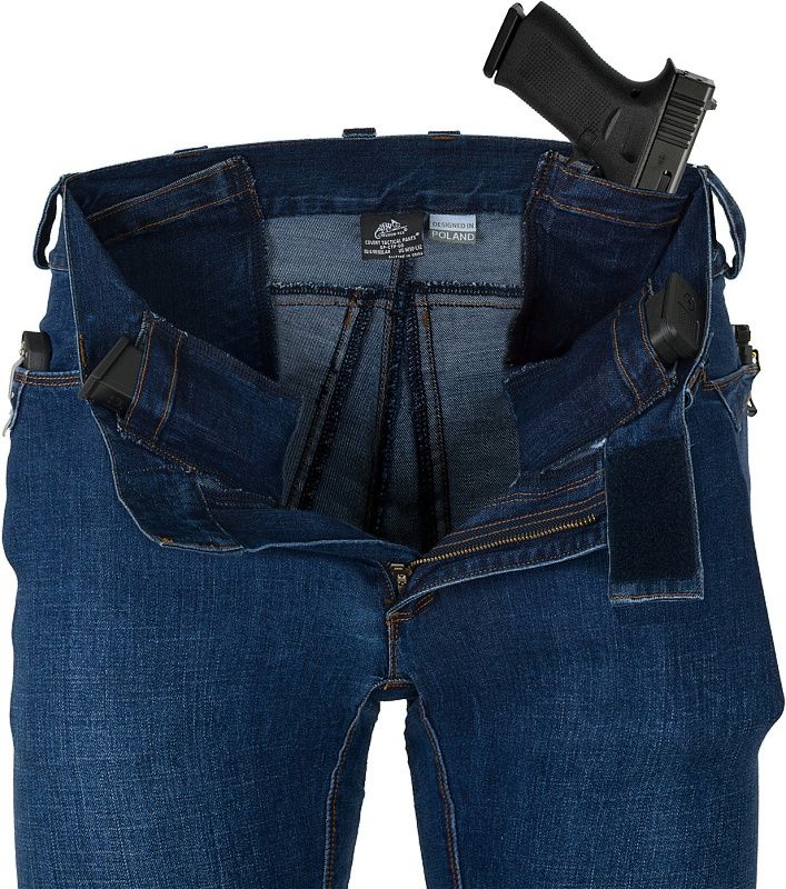 Taktické jeansové nohavice COVERT známej značky HELIKON sú skvelý kus oblečenia pre každodenné nosenie. Napriek svojmu decentnému vzhľadu ponúkajú štyri vnútorné vrecká (dve vpredu, dve na bokoch) na nosenie zásobníkov a zbrane. Ďalej disponujú šiestimi externými vreckami, ktoré sú usporiadané v inovatívnom vzroe, takže poskytujú maximálne pohodlie pri nosení nutného vybavenia. Skvelý strih nohavíc spolu s kvalitnou látkou zase ponúkne maximálnu slobodu pohybu bez akéhokoľvek obmedzenia.