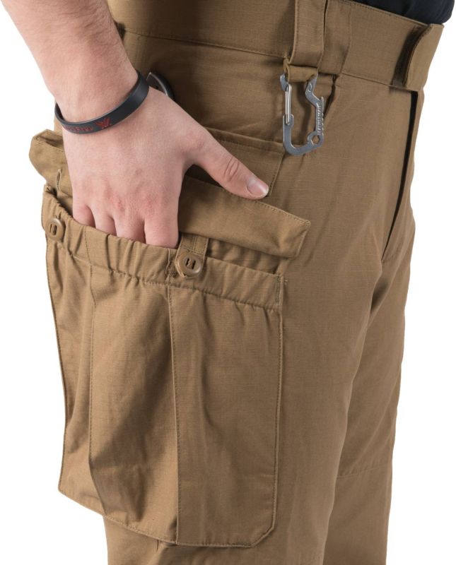 Na stehnách sú dve priestranné cargo vrecká a na zadnej strane lýtok nájdete dve menšie vrecká. Nohavice majú taktiež dva úchyty na karabíny. Nohavice majú aj elastickú šnúrku na konci nohavíc aby sa vedeli čo najlepšie prispôsobiť vašim požiadavkám a potrebám. Kolená sú zosilnené keďže sú jedným z najviac namáhaných miest.