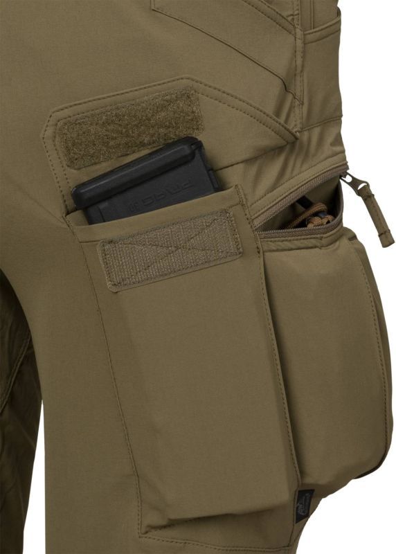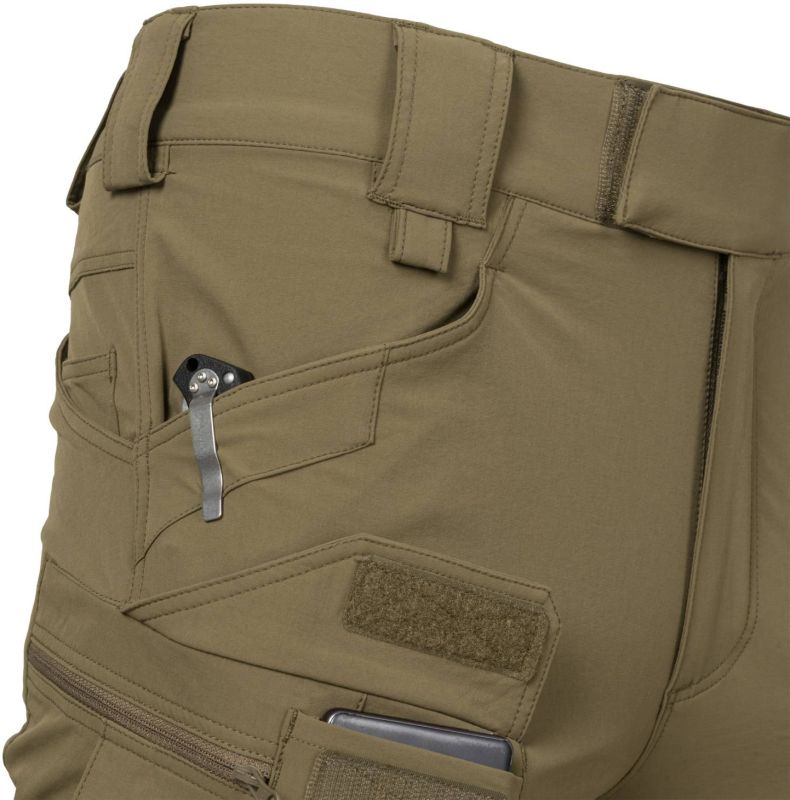 Strih a rozloženie vreciek zachovávajú civilný vzhľad a zároveň umožňujú prenášanie potrebného vybavenia bez obmedzenia pohybu. Elastický pás a zapínanie na suchý zips umožňujú nastavenie veľkosti. Veľké pútka na opasok podporujú široké opasky (až do 50 mm). Džínový strih na zadnej strane nohavíc bráni ich kĺzaniu. Vrecká sú vystužené pre odolnosť voči častému používaniu.