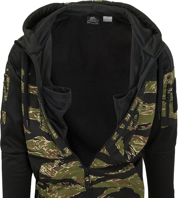 Rogue Hoodie je jedinečná mestská taktická mikina, ktorá spája vojenský štýl s modernými technickými riešeniami. Vyrobená je z odolného polyesteru s použitím technológie rip-stop, vďaka čomu je odolná voči oderu a roztrhnutiu, čo zaručuje dlhú životnosť v rôznych podmienkach. Voľný strih a nastaviteľná kapucňa na šnúrku poskytujú pohodlie a ochranu pred chladom a vetrom. Unikátne panely s maskovacím vzorom dodávajú mikine výrazný vojenský vzhľad.