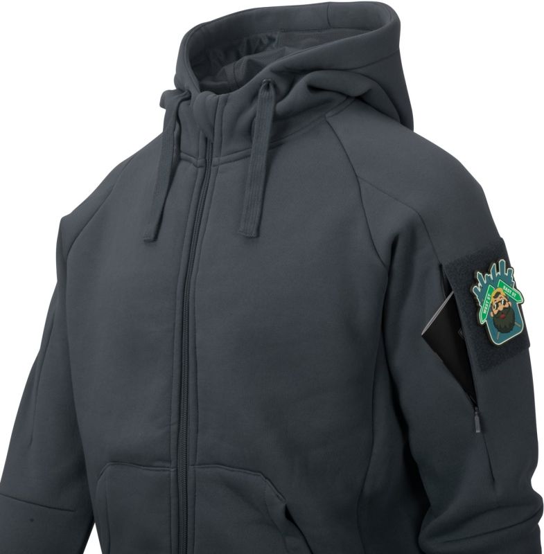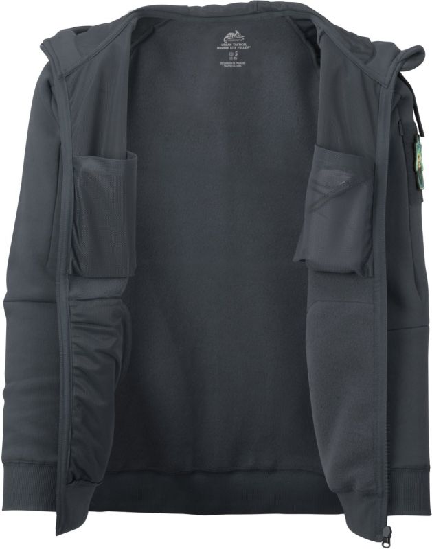 Mikina má celkovo 6 vreciek, ktoré sú navrhnuté tak, aby zvyšovali funkčnosť bez narušenia vzhľadu. Nastaviteľná kapucňa má navyše panel so suchým zipsom, ktorý rozširuje jej použitie. Vysoké zapínanie zipsu poskytuje ochranu krku a tváre pred chladom a nepriaznivým počasím.