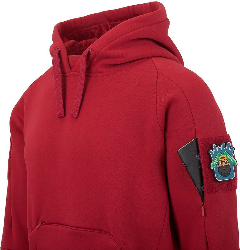 Nad hlavným vreckom je skryté vrecko na zips, ktoré je ideálne na prenášanie dokladov alebo peňaženky. Na oboch ramenách sú diskrétne vrecká na drobnosti a velcro panely, na ktoré môžete pripevniť nášivky. Vďaka použitej zmesi bavlny a polyesteru je mikina rýchlo suchá, takže bude v pohode aj na tréningy v chladnejších dňoch.