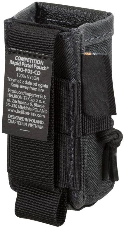 COMPETITION single pistol mag Insert je doplnok z rady  COMPETITION od Helikonu. Sumku pre pištolový zásobník štandardných veľkostí. Pouch je možné pripevniť pomocou systému MOLLE / PALS alebo ho možno pripevniť priamo na opasok do šírky 50 mm.